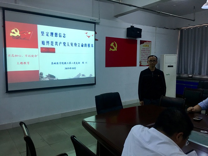 学院党委委员车向新同志结合自己亲身经历做了专题辅导,并和大家进行学习交流。车向新同志分别从“我是谁?从哪里来? 将到哪里去?”、“听教授博士报告,领会精神实质”等四个方面给全院党员上了一堂精彩生动的党课。通过本次党课培训,进一步坚定全体党员的理想信念,在教书育人过程中要有主动担当意识,时刻铭记师德规范;在各自岗位上起到先锋模范作用,以为基层医疗机构培养合格、优秀卫生人才为己任;在为教研室建设、学科专业建设、学院建设与发展等方面多出谋划策,想方设法,力求创新。
